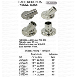 Reelingu alus AISI316 22,2 mm 60 kraadi / GS72337 1 tk